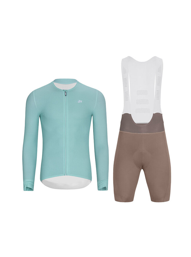 Koszulka kolarska z długim rękawem i spodnie - ELEVATE - brązowy/jasnoniebieski