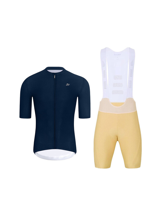 Krótka koszulka kolarska i spodenki - AEROLITE - beżowy/niebieski