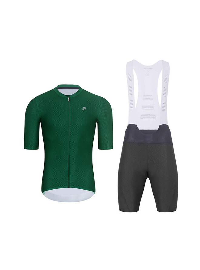 Krótka koszulka kolarska i spodenki - AEROLITE - antracyt/zielony