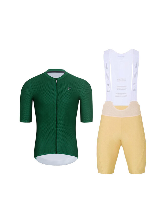 Krótka koszulka kolarska i spodenki - AEROLITE - beżowy/zielony