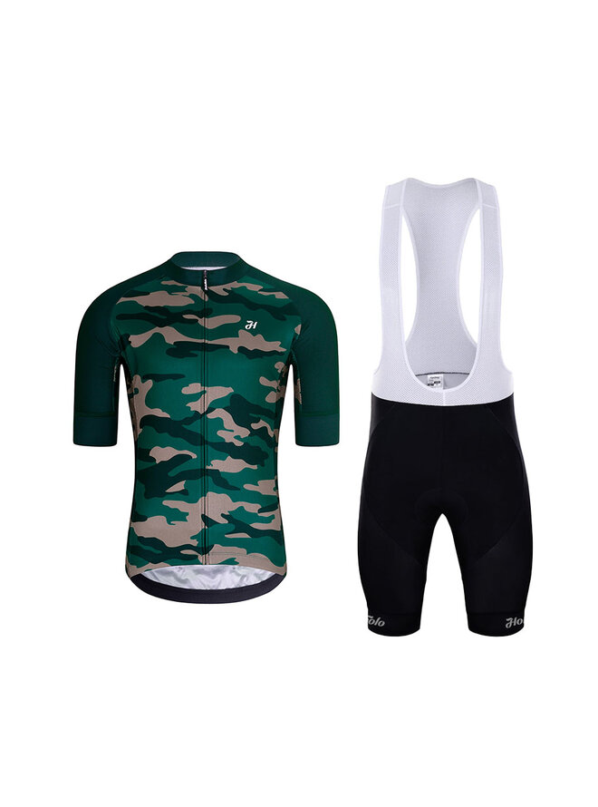 Krótka koszulka kolarska i spodenki - CAMOTRAIL - czarny/zielony
