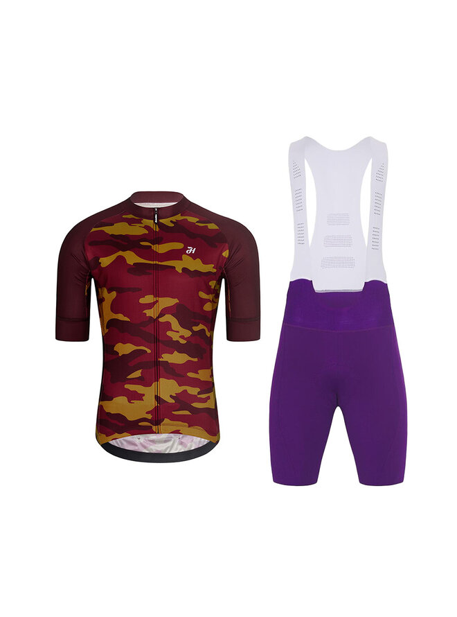 Krótka koszulka kolarska i spodenki - CAMOTRAIL - fioletowy/bordowy