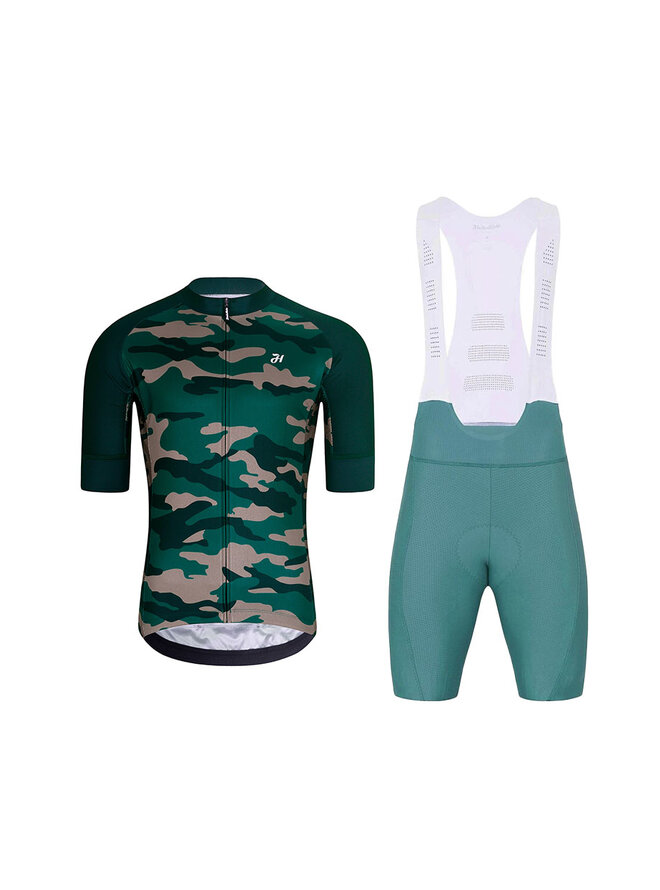 Krótka koszulka kolarska i spodenki - CAMOTRAIL - niebieski/zielony