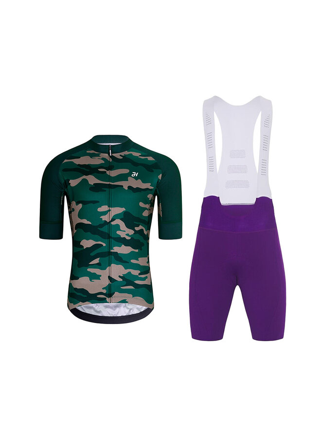 Krótka koszulka kolarska i spodenki - CAMOTRAIL - fioletowy/zielony
