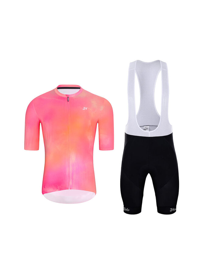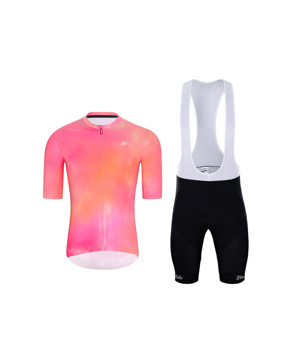 Krótka koszulka kolarska i spodenki - COSMA - czarny/pomarańczowy/różowy
