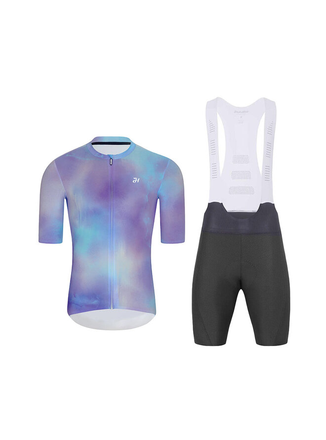 Krótka koszulka kolarska i spodenki - COSMA - antracyt/jasnoniebieski/fioletowy