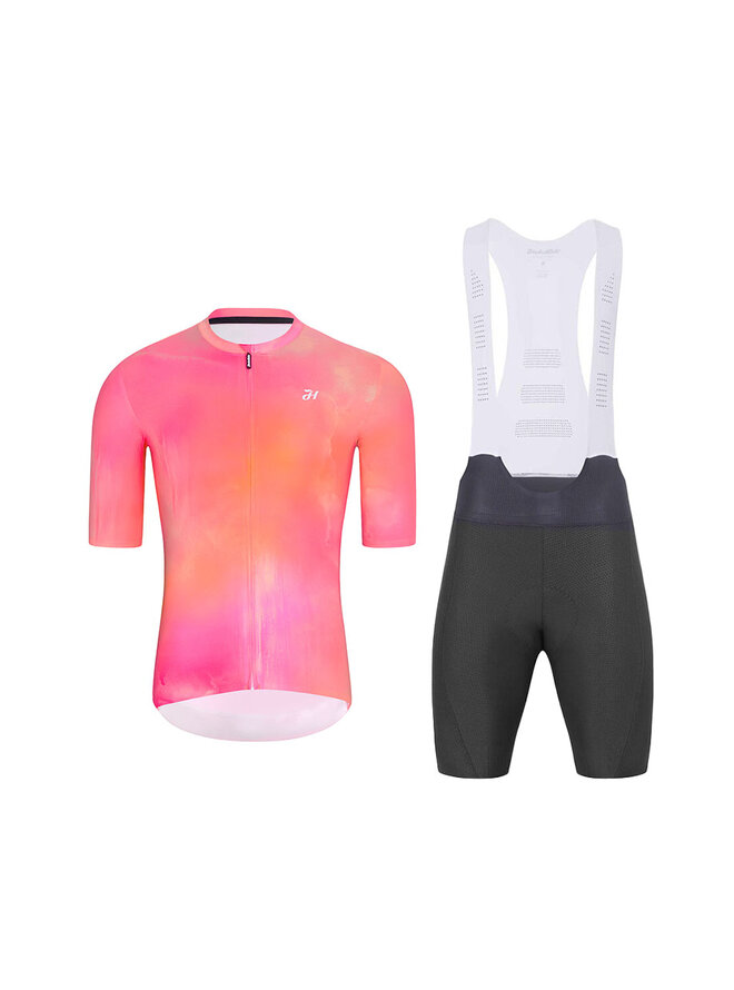 Krótka koszulka kolarska i spodenki - COSMA - antracyt/pomarańczowy/różowy