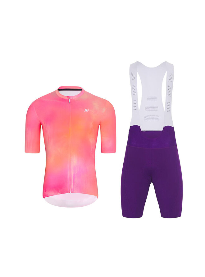 Krótka koszulka kolarska i spodenki - COSMA - fioletowy/pomarańczowy/różowy