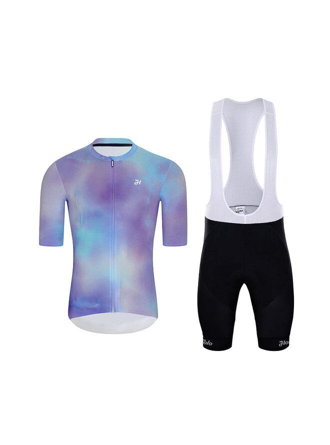 Krótka koszulka kolarska i spodenki - COSMA - czarny/jasnoniebieski/fioletowy