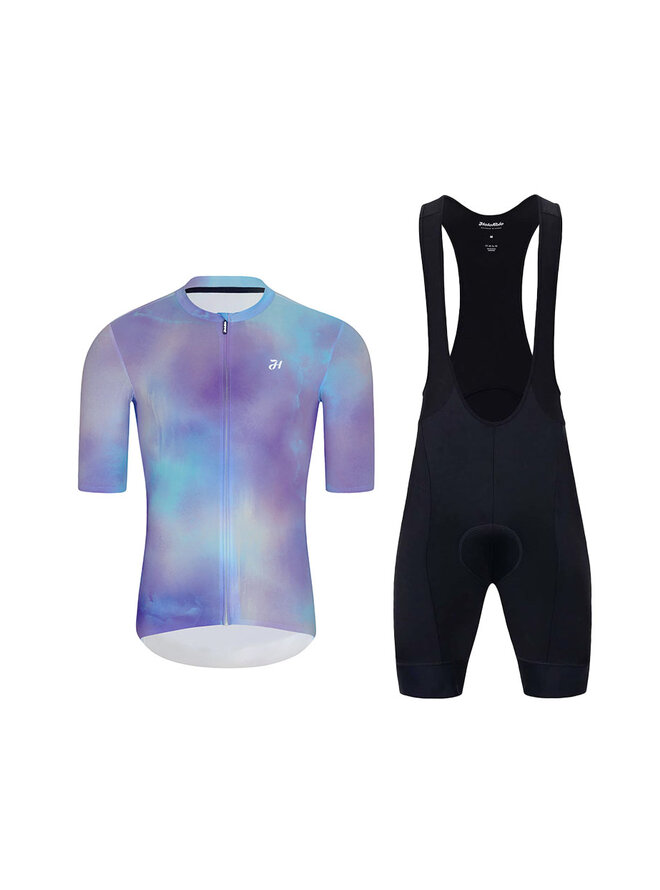 Krótka koszulka kolarska i spodenki - COSMA - czarny/jasnoniebieski/fioletowy