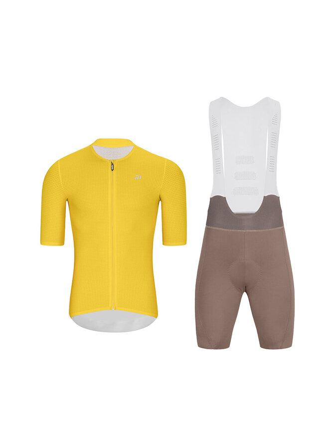 Krótka koszulka kolarska i spodenki - ELEVATE - brązowy/żółty
