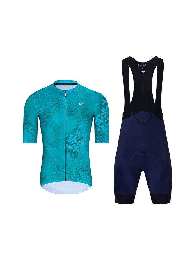 Krótka koszulka kolarska i spodenki - RUSTLE - niebieski/czarny/turkusowy