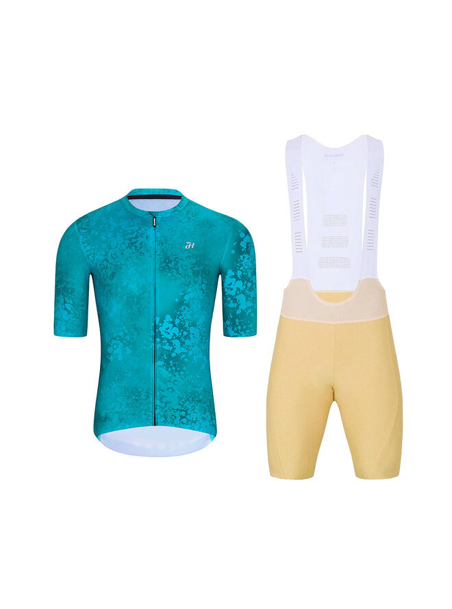 Krótka koszulka kolarska i spodenki - RUSTLE - beżowy/turkusowy