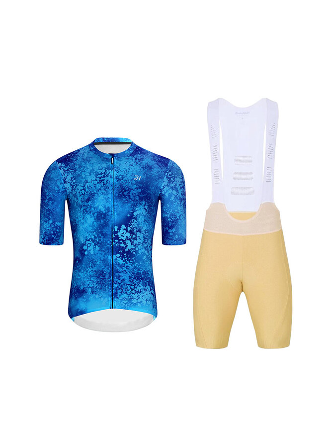 Krótka koszulka kolarska i spodenki - RUSTLE - beżowy/niebieski