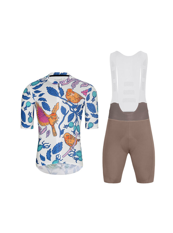 Krótka koszulka kolarska i spodenki - SPARROVER - brązowy/biały/kolorowy